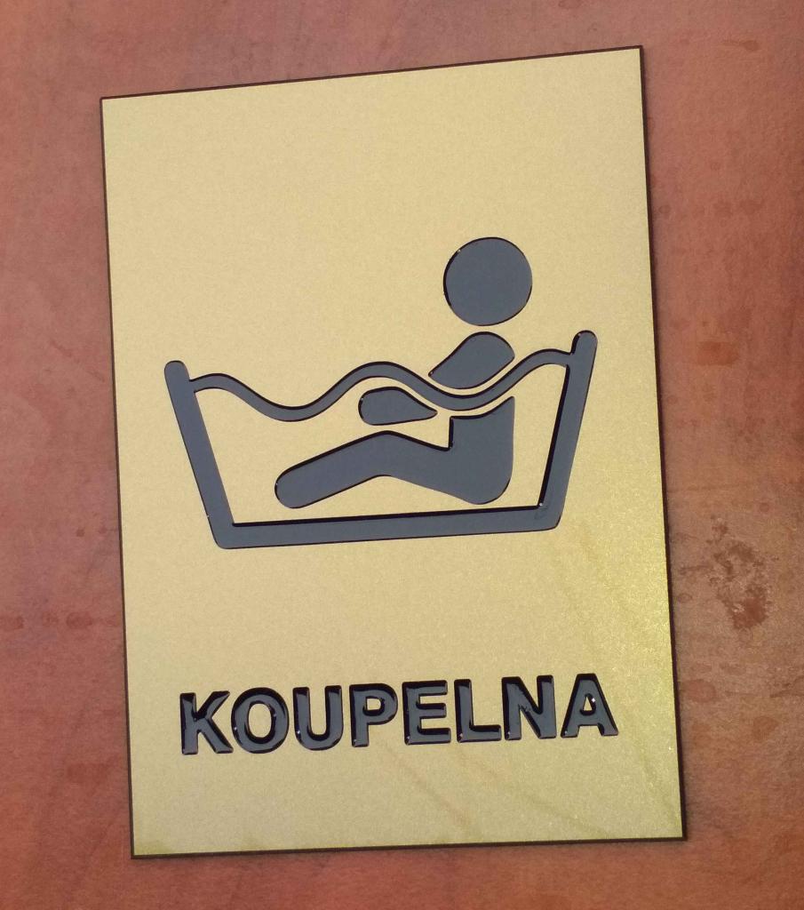 Gravírovaný piktogram z odolného bronzového akrylátu o síle 3mm, gravura vybarvena černě, možnost různého rozměru a různé grafiky, gravuru lze vybarvit libovolnou barvou.Cena platí pro toto provedení.Akrylátový plast v nabídce také matný stříbrný.